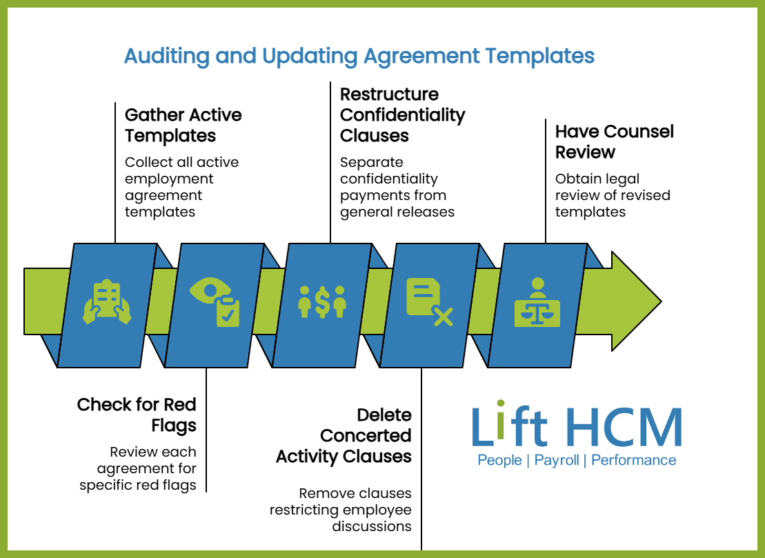 Gather and audit all of your employment offer letters, separation agreements, settlement agreements, and NDAs. If your legal team or outside counsel has versions, get those too, template drift is common and creates compliance gaps you may not know exist.