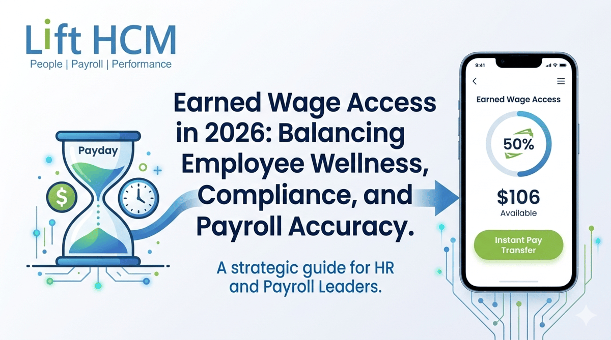 This article gives you a straight, honest look at earned wage access in 2026—what it is, how big it's become, what regulators are doing about it, how it affects employee financial wellness, and how to roll it out responsibly. We'll also be clear about where Lift HCM fits in: not as an EWA provider, but as the payroll foundation that makes EWA work correctly.
