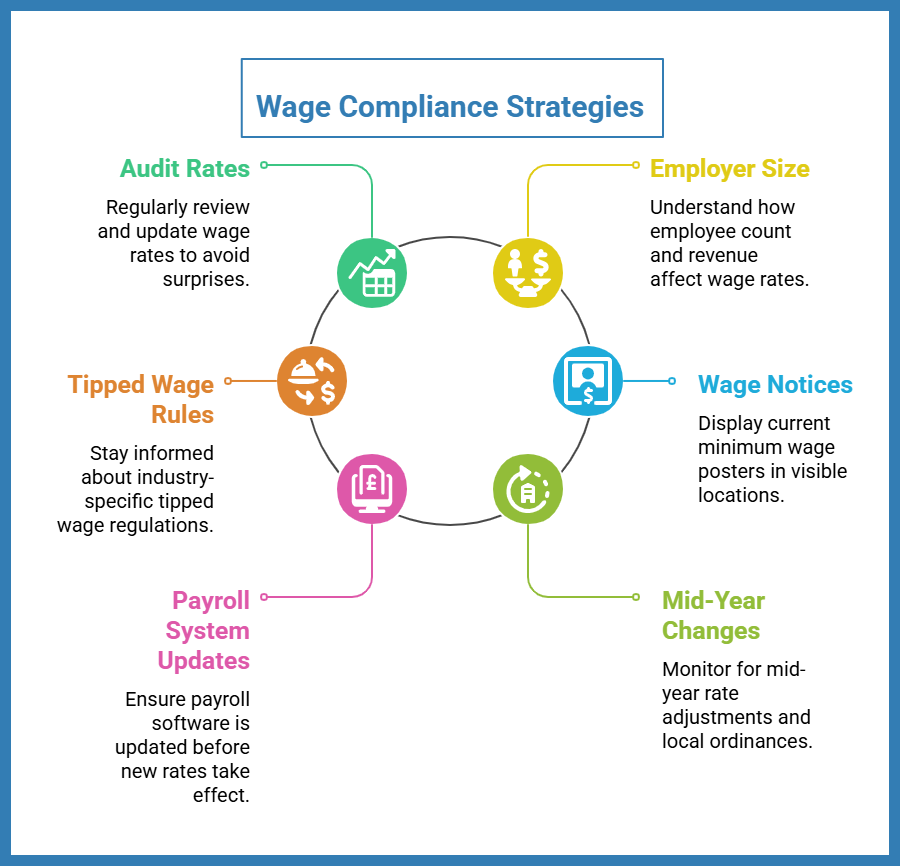 With rates changing frequently and industry-specific thresholds layering complexity into state requirements, minimum wage compliance requires a proactive, year-round approach. Here are the most critical steps every employer should take: