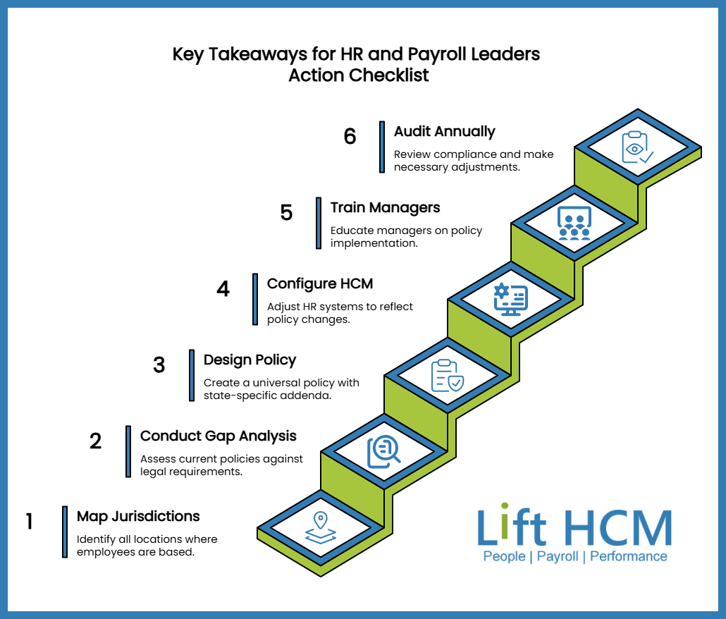 Because these laws change frequently, always confirm current requirements using official state labor department sites or other authoritative HR compliance resources before updating your policies.